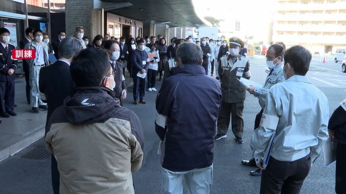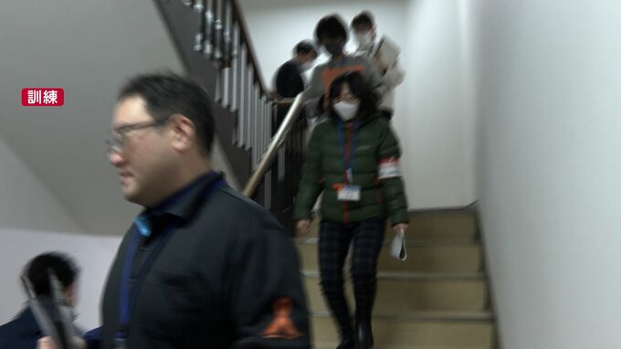 能登半島地震では火災や倒壊などの被害が相次いだことから、職員らは、初期消火や避難誘導など、迅速に避難を終えるまでの手順を確認していきました。