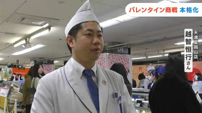 (天満屋岡山店 越智恒行さん)「おいしいものを食べて皆様に明るくなってもらいたいという思いで、バレンタインのイベントを行っております」