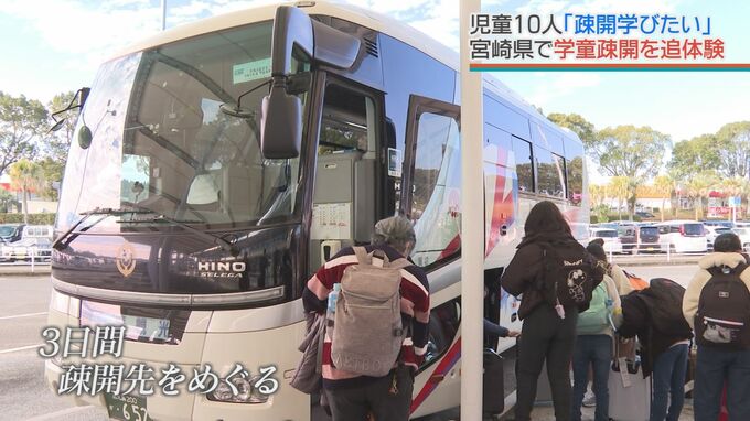 鹿児島空港に到着した10人の児童。これから3日間、宮崎県で当時の疎開先をめぐります。