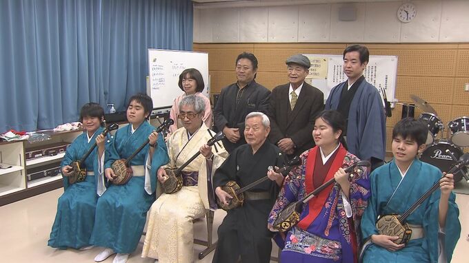 盲学校に通う生徒たちが琉球古典音楽の演奏家とともに舞台発表に挑戦し、初めての着物姿で日頃の練習の成果を披露しました。