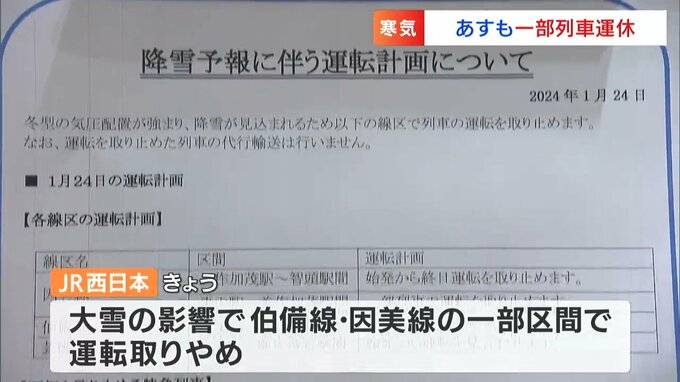 (坂井亮太キャスター)「大雪の影響は公共交通機関にも出ています。JRは岡山県北部で大雪が見込まれることから、在来線の一部区間で終日運転を取りやめています」