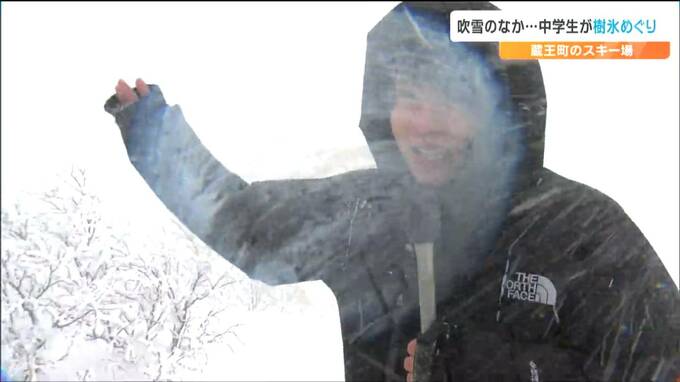 カメラのレンズが凍るほどの寒さの中、雪によって視界が奪われるホワイトアウトが発生。標高1600mの樹氷原までたどり着くことはできませんでした。それでも、生徒たちは「でき始め」の樹氷を観察しました。