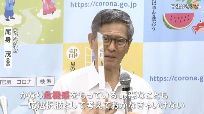 7月14日午後8時過ぎ、会見した政府分科会の尾身会長。今の感染状況に危機感をあらわにしました。