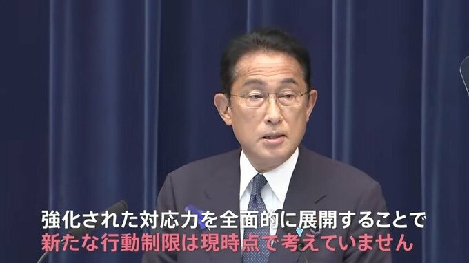 「私たちはこれまで、6回の感染の波を乗り越えてきました。我が国全体として対応力が強化されています。まずは強化された対応力を全面的に展開することで、新たな行動制限は現時点では考えていません」