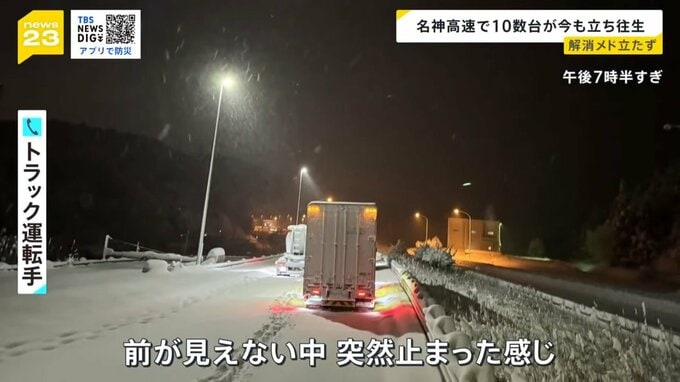 岐阜県関ケ原町付近の名神高速では、大雪の影響で午前中からトラックなど10数台が立ち往生しました。仕事で佐賀から長野に向かっていたというトラック運転手に話を聞きました。