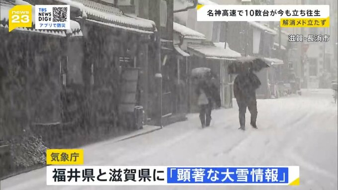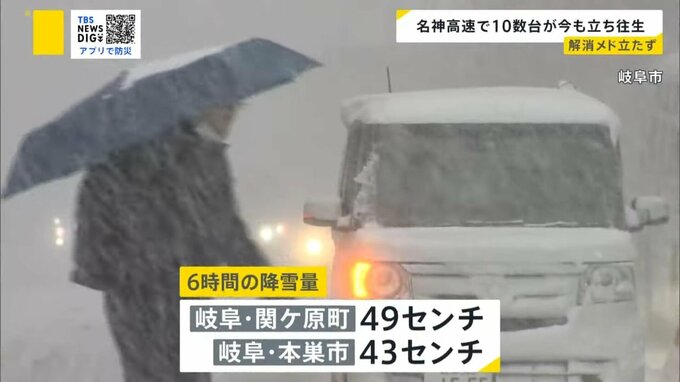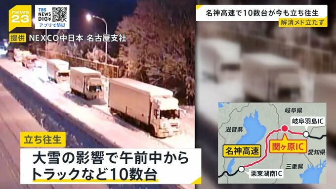 この冬一番の寒波の影響で、日本列島の各地で大雪となっています。岐阜県を走る「名神高速」ではトラック十数台が立ち往生し、解消のメドはたっていません。