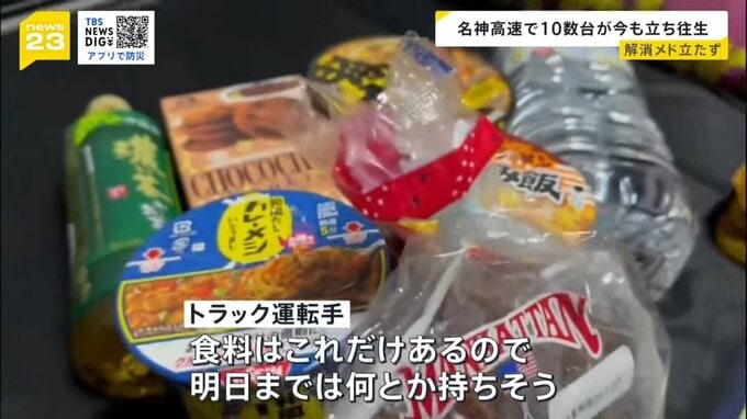 「何キロか手前くらいから、前が見えないくらい雪が降っていて。前が見えない中、突然止まった感じ。え~って感じになった。食料はあるので明日まではなんとか持ちそう」