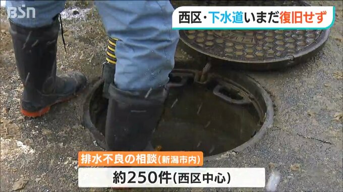 新潟市によりますと、地震発生からこれまでに排水不良に関する相談が西区を中心におよそ250件寄せられています。
