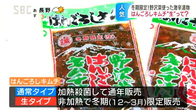 「生タイプは12月から3月まで野沢菜が一番おいしい時期になりますので、フレッシュなままの甘さを歯ごたえを味わっていただきたいので、非加熱で生の状態でお届けしております」