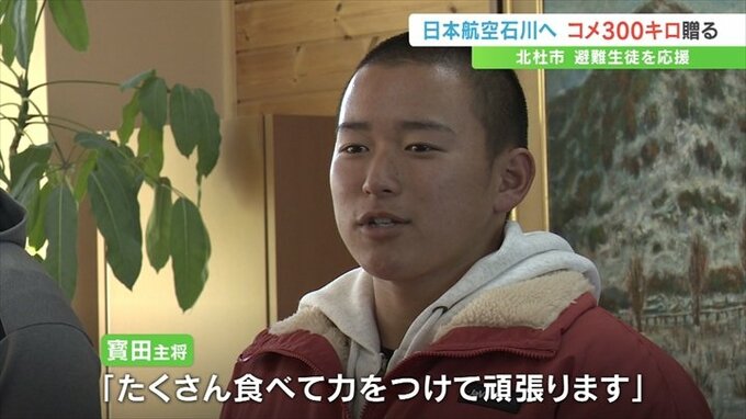 「もらったお米をたくさん食べて、これから大会があるので、それに向けて全員で力あわせて頑張っていきたい」