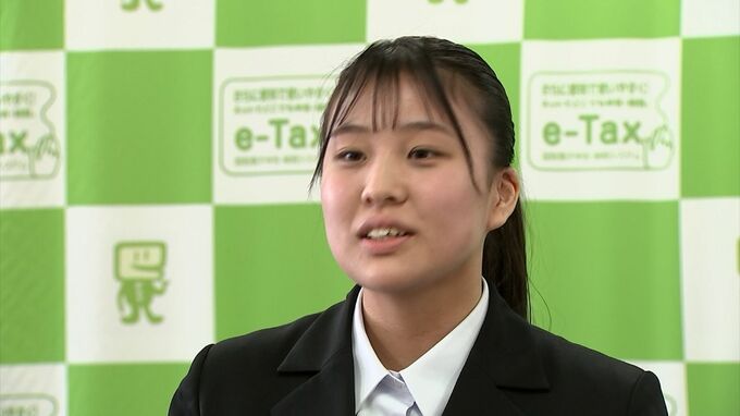 スマートフォンを使って所得税の確定申告を体験したのは、去年春のセンバツで国歌を独唱した中村心澪さんです。中村さんは、アルバイト収入があるなどの設定でスマホを操作して申告を行いました。