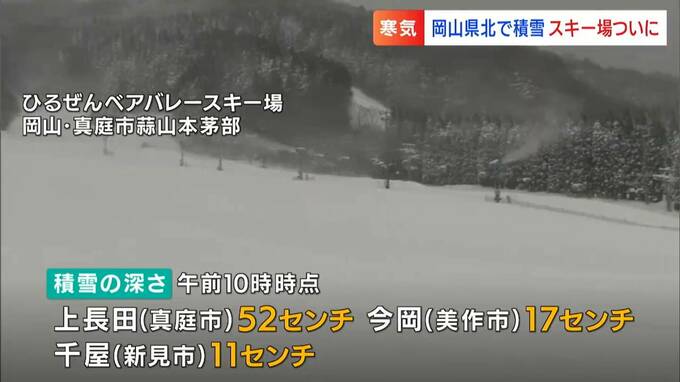「今季最強」といわれる寒波の襲来で、きのう(24日)の夜、岡山県北部では大雪警報が発表されました。50センチを超える積雪も観測され、雪不足でいまだ営業ができずにいたスキー場にとっては「恵みの雪」となりました。