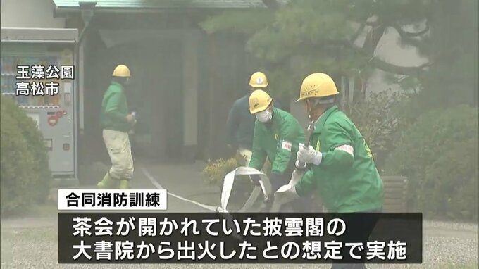 きょう(26日)は文化財防火デーです。香川県高松市の玉藻公園にある国指定の重要文化財、披雲閣でも消防訓練が行われました。