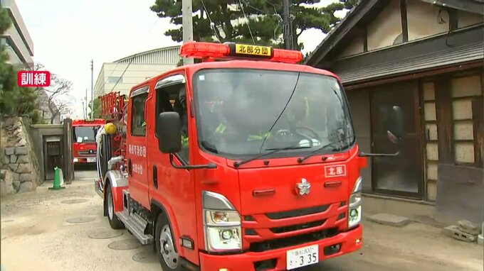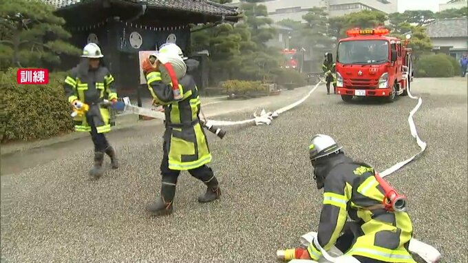 披雲閣での合同消防訓練は新型コロナの影響などもあり6年ぶりです。