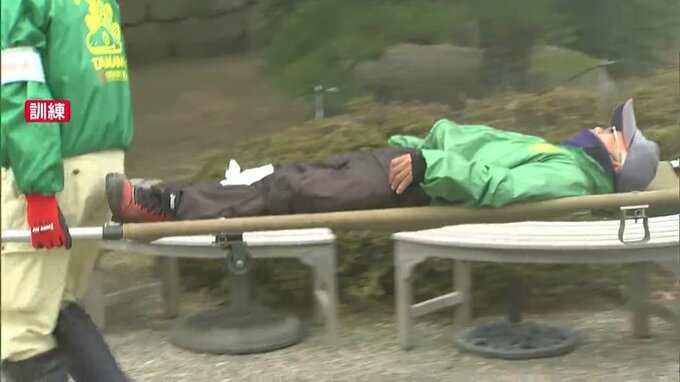 訓練は茶会が開かれていた披雲閣の大書院から出火したとの想定で行われました。