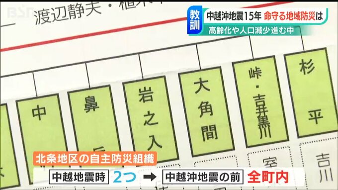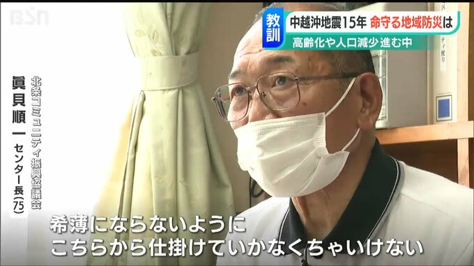しかし、地震から15年がたった今、人口は1000人以上減り、高齢化率は44.43パーセントと高い水準に。自主防災組織のリーダーのなり手が減るなど、重ねていく年月とともに課題が見えてきています。