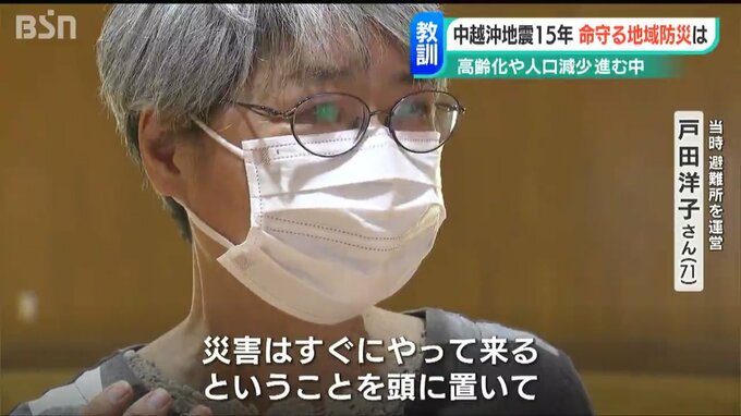 【戸田洋子さん】「災害は忘れた頃にやって来るじゃなくて、災害はすぐやって来るということを頭において、自主防災組織を立ち上げたり、要援護者台帳を整備したりとかそんなことに取り組んで、直後にまた中越沖地震がやってきたので」