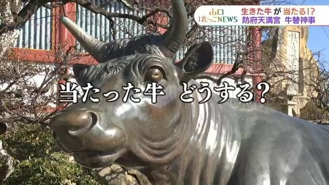 そう、当選者は防府天満宮の伝統行事で牛を引く重要な役を与えられるんです。