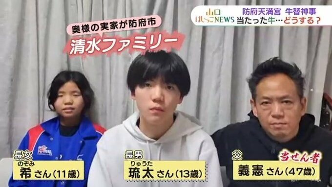 奥様のご実家が防府市で、牛替神事に毎年参加している清水ファミリーです。
