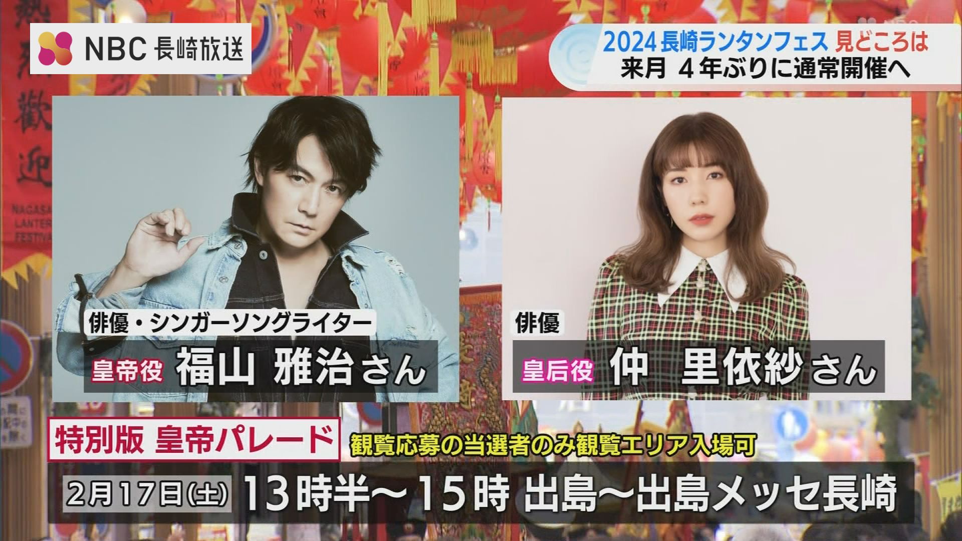 目玉のイベントは17日に行われる特別版皇帝パレード。皇帝役に福山雅治さん、皇后役には仲里依紗さんを迎え、出島から出島メッセ長崎までパレードします。