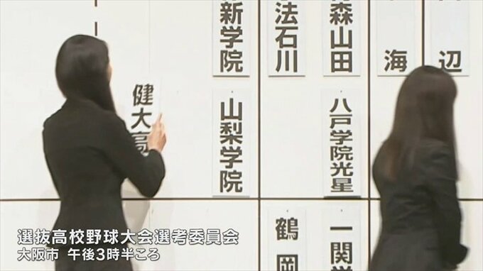 出場校は26日午後大阪市で開かれた選考委員会で決定し、山梨学院の名が読み上げられました。