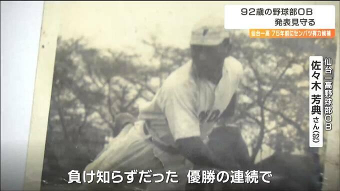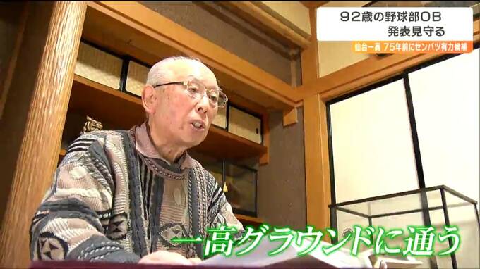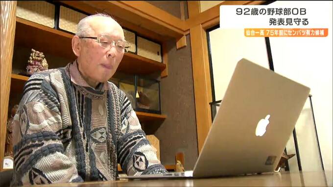 惜しくもセンバツの切符を逃した仙台一高ですが、実は今から75年前にも春の選抜の有力候補となりあと一歩で代表を逃したことがありました。その時、エースだった92歳の野球部OBも発表の瞬間を見守りました。