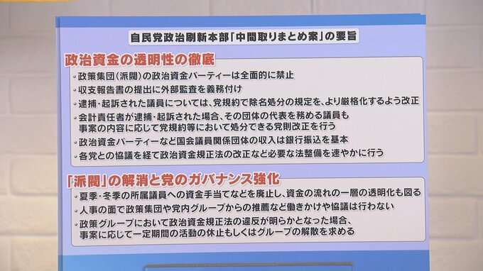 だからそこは(政治刷新本部の中間とりまとめ案の)文章の中にもありますけども、まずその関係者における明確な説明責任をしっかり説明してほしいと。それは何でこういうことが起きたのかとか、そういうことを説明してほしいと。それに加えて政治責任のあり方についても結論を得ていくと書かれており、また岸田総理も23日、「政治責任のあり方については党として結論を得ていきたいと思います」という話をされています。そういった意味でどういう形で、これは法律的なものと、政治的なものと当然あります。いわゆる監督責任も含めて、それをどうしていくのかっていう話は、これから党の中で議論されるんだと思います。