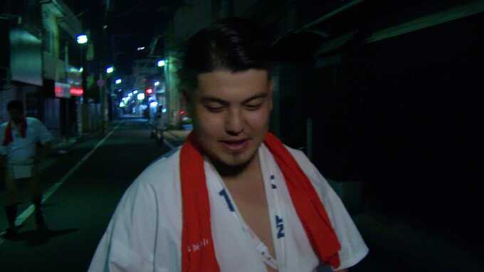一番山笠・恵比須流の美川大空さんです。美川さんは「追い山笠」でスタートから櫛田神社の清道を回って出て行くまで山笠を舁く「櫛田入り」のメンバーに選ばれました。