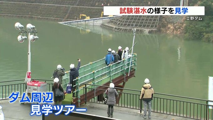 1月15日から行われている立野ダムの試験湛水の様子を間近で見ることができる見学会が行われました。立野ダムは熊本市など白川流域の水害防止を目的に、南阿蘇村と大津町にまたがる白川上流で建設されています。試…