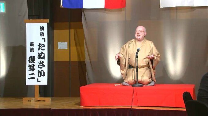祝賀会ではフランス人落語パフォーマー シリル・コピーニさんによる落語も披露されました。