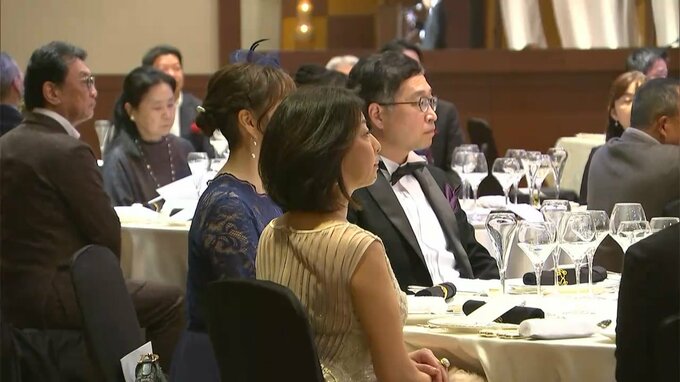 祝賀会は岡山日仏協会の設立10周年を記念して開かれたもので、会員ら約100人が参加しました。
