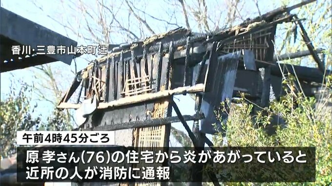 きょう(29日)午前4時45分ごろ、三豊市山本町辻の原 孝さん(76)の住宅から「炎があがっているのが見える」と、近所の人から消防に通報がありました。