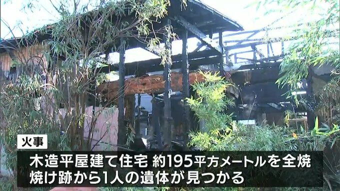 消防車など19台が出て消火にあたりましたが、火は約3時間にわたって燃え続け、木造平屋建ての住宅約195平方メートルを全焼し、焼け跡から1人の遺体が見つかりました。