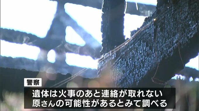 この住宅には原さんが1人で住んでいて、火事のあと連絡が取れなくなっていることから、遺体は原さんの可能性があるとみて警察が身元の確認を急いでいます。