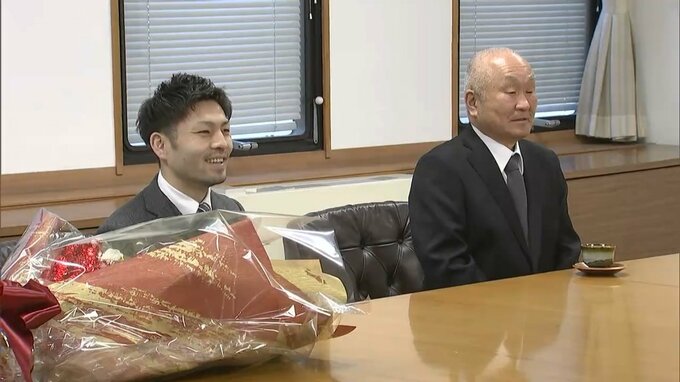 ユーリ阿久井政悟選手はけさ(29日)倉敷市役所を訪れ、伊東市長にチャンピオン獲得を報告しました。