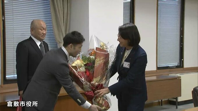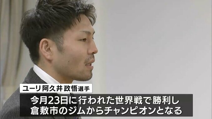 岡山県倉敷市出身で、ボクシング・WBA世界フライ級のチャンピオンになったユーリ阿久井政悟選手が、倉敷市長を表敬訪問しました。
