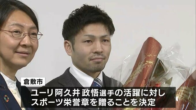 倉敷市はユーリ阿久井政悟選手の活躍に対し、スポーツ栄誉章を贈ることも明らかにしました。