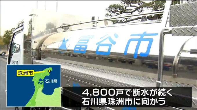 能登半島地震で被災し、今も4800戸で断水が続く石川県珠洲市を支援しようと、富谷市は29日、給水車1台を現地に派遣しました。