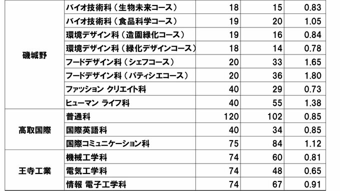奈良県公立高校入試2024 磯城野パティシエコース1.8倍にシェフコース1.65倍 国際(国際plus)1.47倍など特色ある志望倍率【令和6年度高校受験 進路希望調査】 毎日放送 2024年1月29日(月) 14:40 国内 学校別の一覧 磯城野はパティシエコース1.8倍 シェフコース1.65倍
