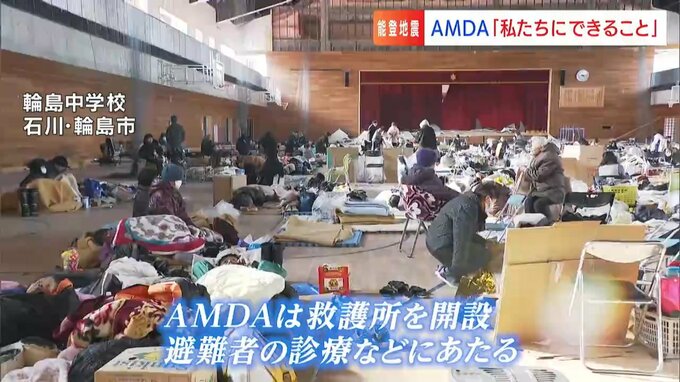 その後、避難所である輪島中学校に救護所を開設し、避難者の診療などにあたっています。