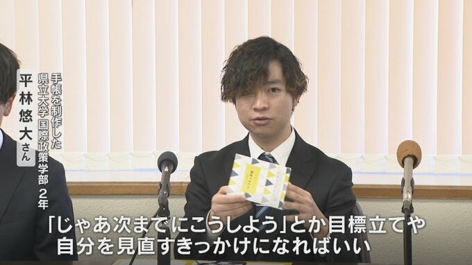 手帳を制作した県立大学国際政策学部2年 平林悠大さん: