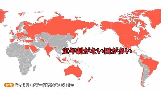 一方、海外の定年退職を調べてみると、イギリス・カナダ・オーストラリアなど 原則、定年制そのものがない国が想像以上に多くあります。さらにアメリカなど、定年制を“年齢差別”として禁止している国もあることがわかりました。