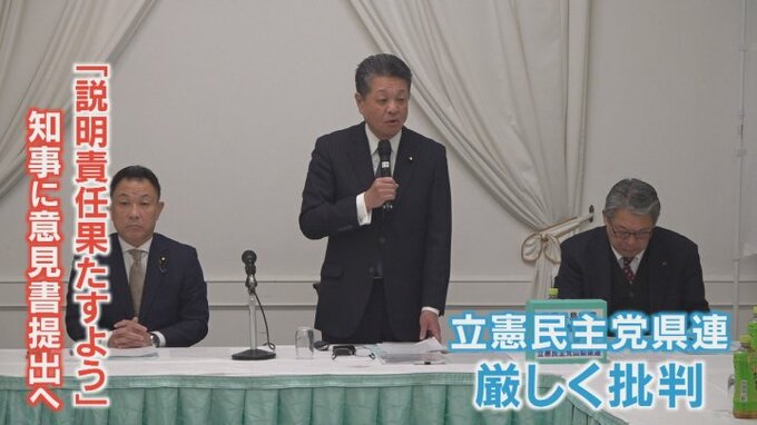 立憲民主党県連は近く、知事に対して説明責任を果たすよう求める意見書を提出します。