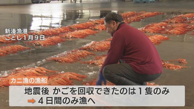 地震で新湊漁港に3隻あったカニ漁の漁船のうち、籠を回収できたのは1隻のみ。漁に出られたのも4日間だけです。