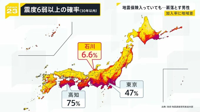政府の地震調査委員会のデータでは今後30年以内に震度6弱以上の揺れに見舞われる確率は、石川県は6.6%と東京都(47%)や高知県(75%)に比べ低く予測されていました。