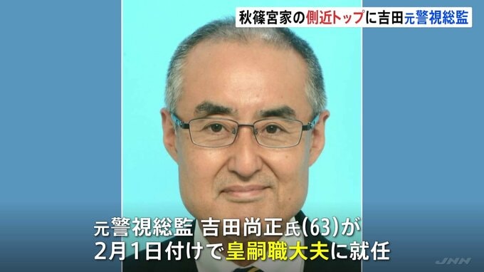秋篠宮家の側近のトップ、皇嗣職大夫に元・警視総監の吉田尚正氏(63)が2月1日付で就任することが、きょうの閣議で決まりました。吉田氏は1983年に東京大学法学部を卒業後、警察庁に入庁。在アメリカ日本大使館の…