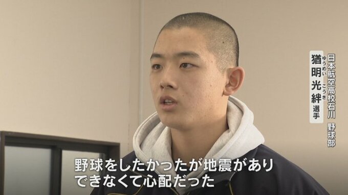 「野球をしたかったが地震がありできなくて心配だった。すぐに慣れていち早く、いつも通りの練習ができるように頑張る」