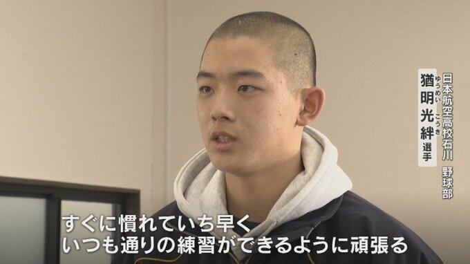 日本航空高校は4月から約600人の石川の生徒を受け入れることを決め、野球部は秋の北信越大会でベスト4に入り、センバツ出場の可能性があったため、ひと足先に生活の拠点を移しました。