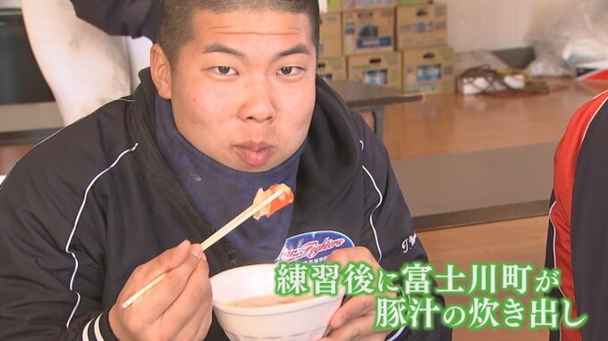 練習後に富士川町が豚汁の炊き出し