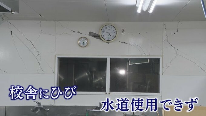 校舎に大きなひびが入り、水道は使用できず学校生活が送れない状態です。
